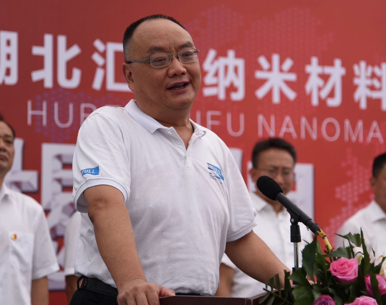 (湖北匯富納米材料股份有限公司董事長王躍林發表致辭)